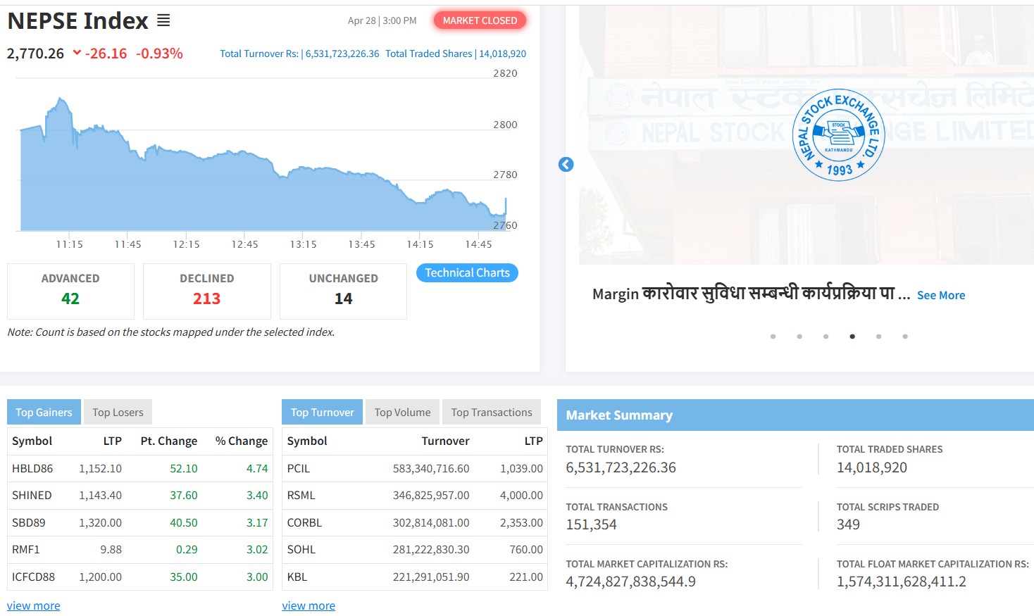 इटहरी । गत साता नेप्से परिसूचक करिब २ प्रतिशत घटेर बन्द भएको छ । ...