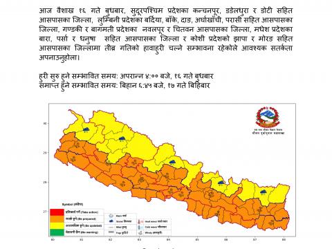 इटहरी । जल तथा मौसम विज्ञान विभागले आज र भोलि देशका हिमाली र पहा ...