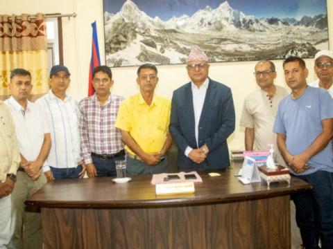 काठमाडौंः अखिल नेपाल फुटबल संघ (एन्फा) का अध्यक्ष पंकजविक्रम नेम्बाङसह ...